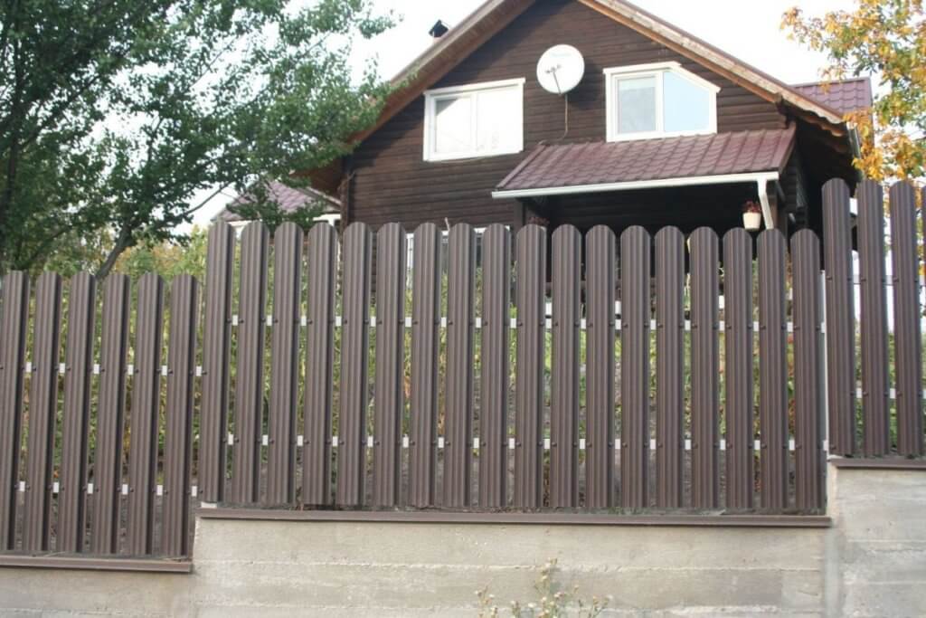 Для участков не более 10 соток подойдет забор из евроштакетника, а для более обширных территорий идеально подойдет ограждение из профнастила (металлопрофиля).
